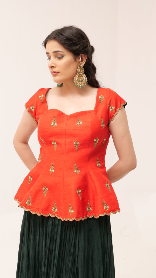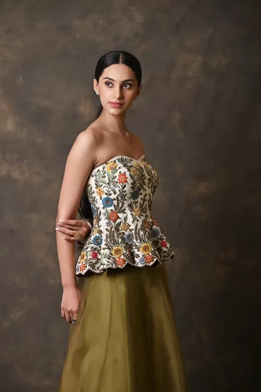 Raw Silk Corset with Handwork & Crushed Opara Skirt