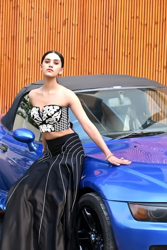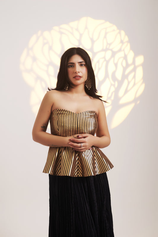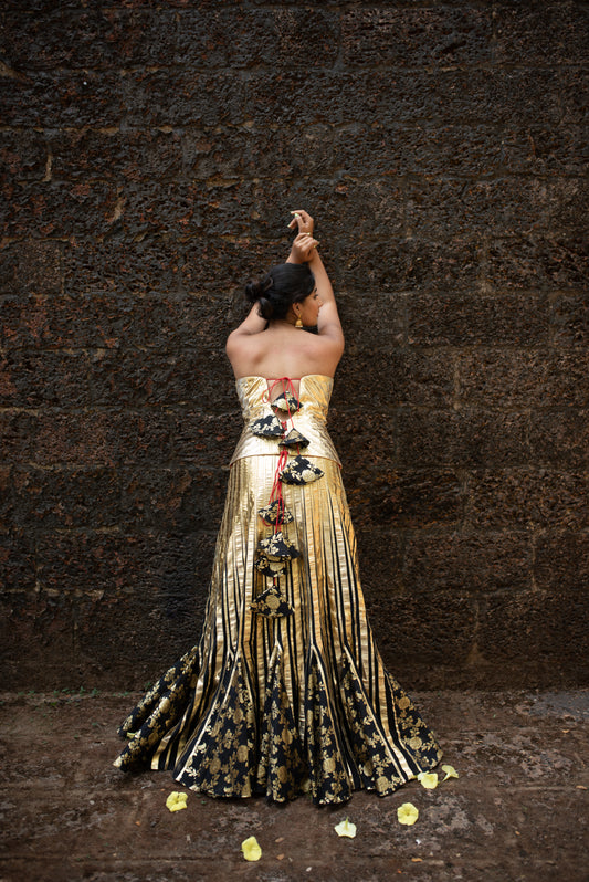 Opulent Gold Gotta Corset with Black Silk Chanderi Skirt
