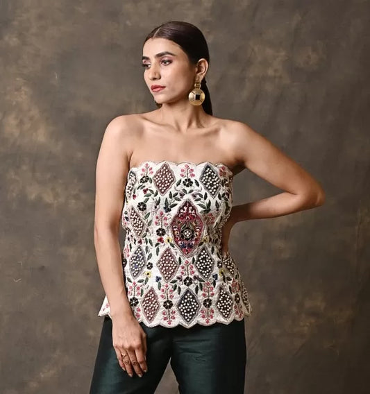 Royal Pearl Zardosi Corset with bottle green pants