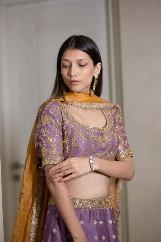 Royal Mustard & Purple Ombre Embroidered Lehenga Set