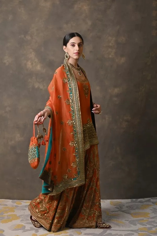 Rusk Crepe Georgette Sharara Set with Metal Hand Work
