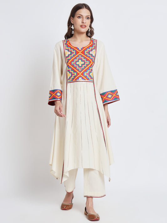Ivory Organic-Cotton Floral-Neck Anarkali