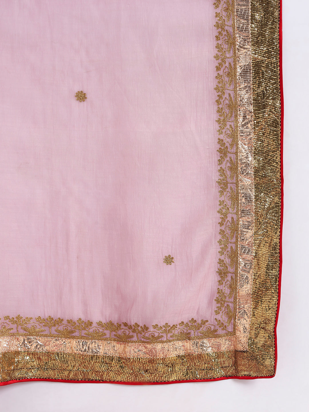 - Contrasting Dupatta Border – Accentuated with gold and red for a royal finish.