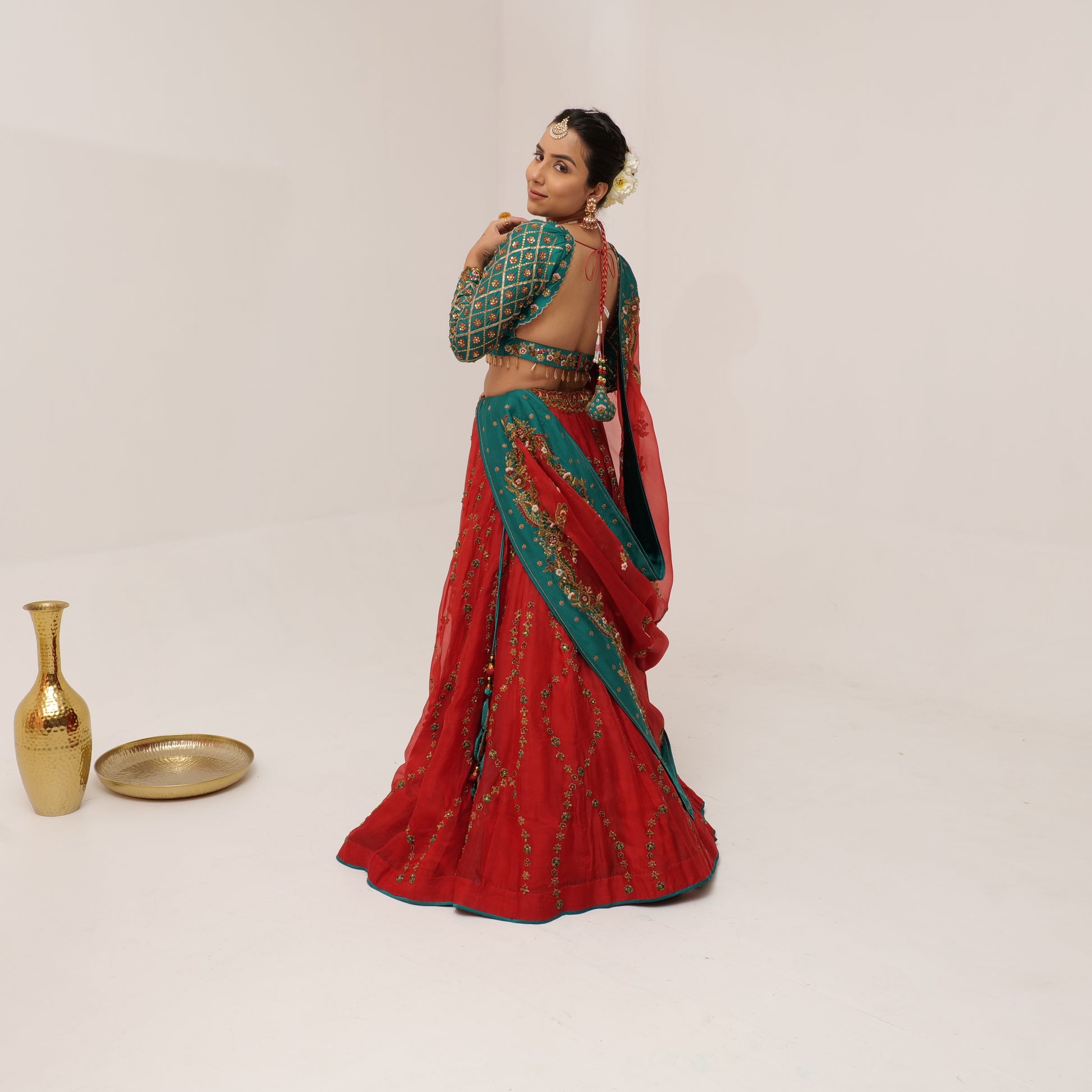 Organza Bridal Lehenga Set with Silk Blouse & Metal Handwork
