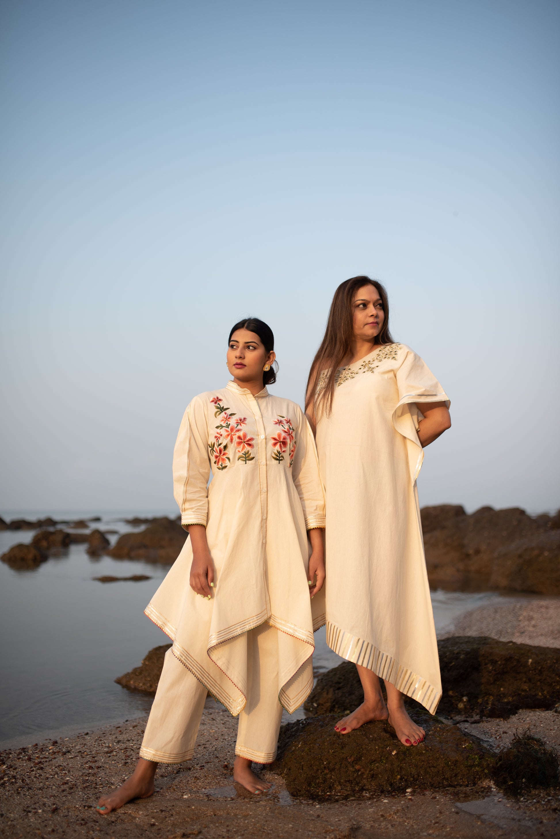The Saira Ivory Kaftan Dress is a timeless expression of grace and sophistication, perfect for those who embrace effortless beauty.