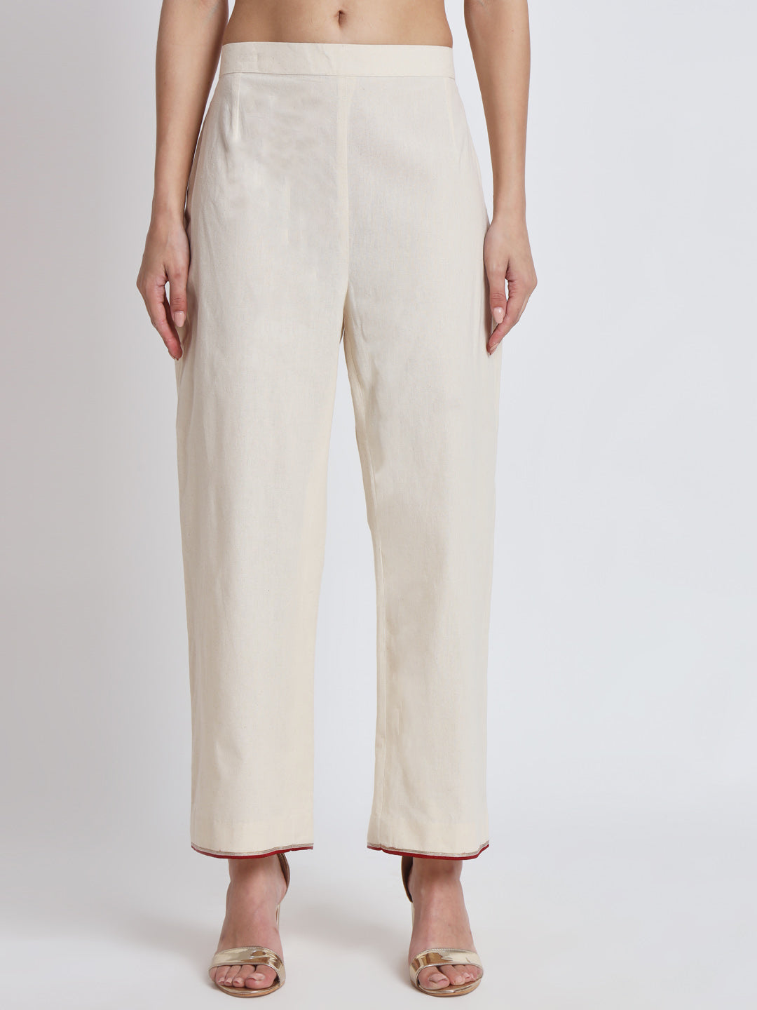 The kurta features a relaxed silhouette with contrast piping and bold, multicolour circular motifs on the bodice, sleeve, and hem—adding a unique, artistic flair. Paired with straight-fit pants, this co-ord set is ideal for festive brunches, creative workspaces, or stylish everyday wear.